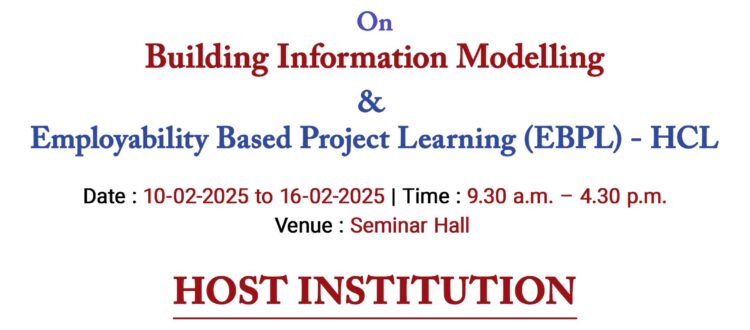 Faculty Development Programme on Building Information Modelling ( BIM) and EBPL ( HCL ) from 10.02.2025 to 16.02.2025 ( 6 days).