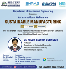 The event focused on optimizing production processes to maintain flexibility and support growth in manufacturing, emphasizing sustainability. It aimed to raise awareness among academics and professionals about sustainable product creation, global procurement standards, and best practices for antibiotic manufacturing. The resource person highlighted the role of mechanical engineers in green manufacturing, showcasing technologies and practices that reduce environmental impact. The outcome was a motivated audience, with faculty and students gaining clarity on sustainable manufacturing. This aligns with SDG 9: Industry, Innovation, and Infrastructure and SDG 12: Responsible Consumption and Production.