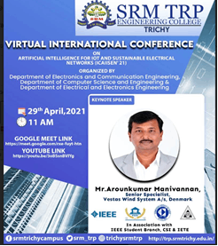 ECE Department organized the Virtual International Conference on Artificial Intelligence for IoT and Sustainable Electrical Networks (ICAIISEN’ 21), where numerous papers were presented on integrating AI with IoT to enhance sustainable electrical networks. These presentations addressed Sustainable Development Goals (SDGs) by exploring innovative solutions for energy efficiency, smart grids, and sustainable urban development. Experts discussed the economic, social, and environmental impacts of these technologies, emphasizing their role in achieving global sustainability targets. The event underscored the critical intersection of technology and sustainability for a greener future.