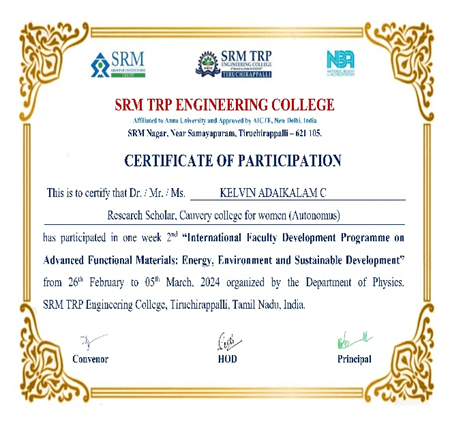 SRM TRP Engineering College organized the “International Faculty Development Program on Advanced Functional Materials: Energy, Environment, and Sustainable Development” to enhance knowledge in sustainable technologies. This program aligns with SDGs by focusing on innovative materials for energy efficiency and environmental protection, demonstrating the college’s commitment to sustainable development and global environmental goals.